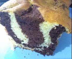 In una teglia per ciambella foderata di carta forno versare i due composti, vaniglia e cacao, a cucchiaiate alternate ripetendo a strati alternando sempre i colori fino ad esaurimento.