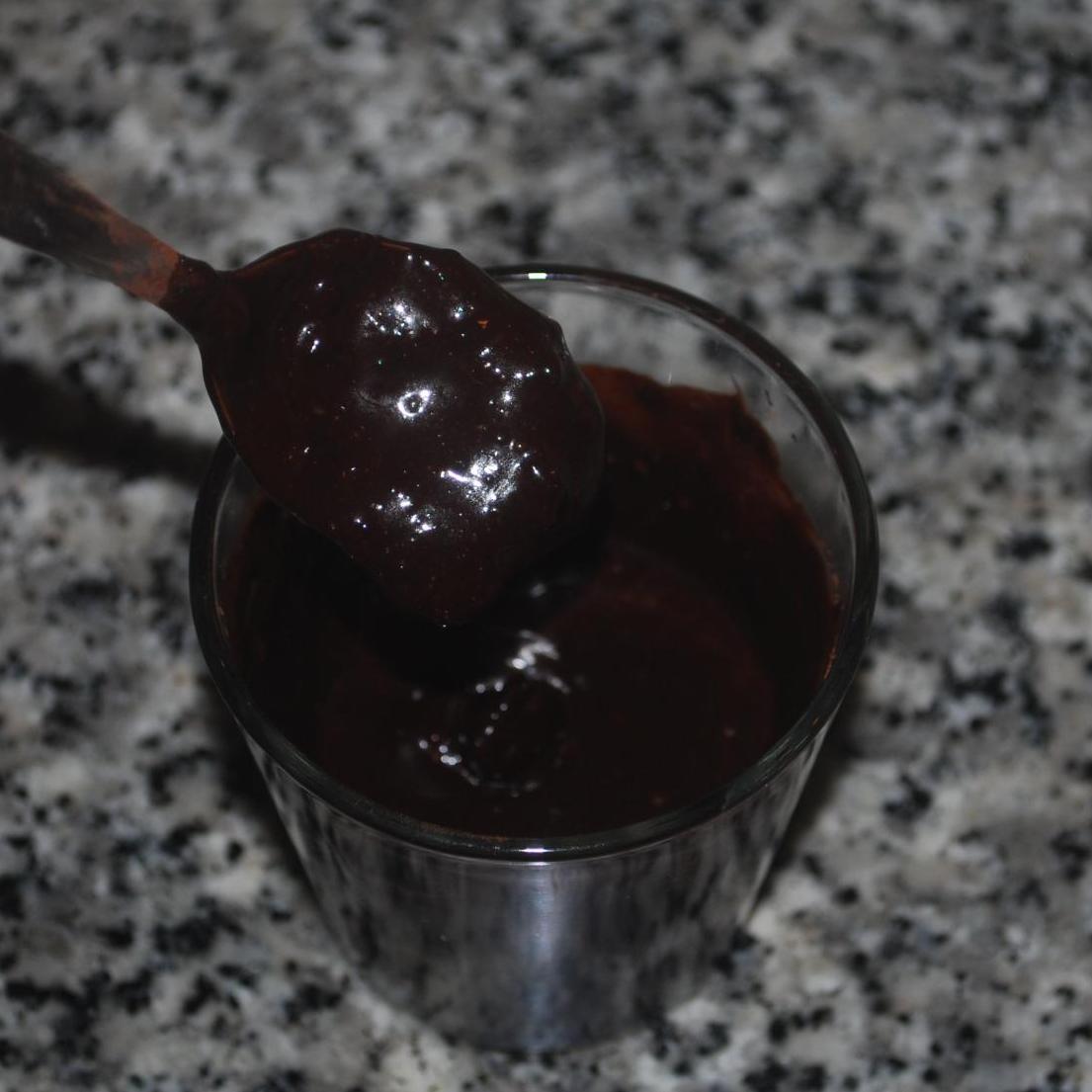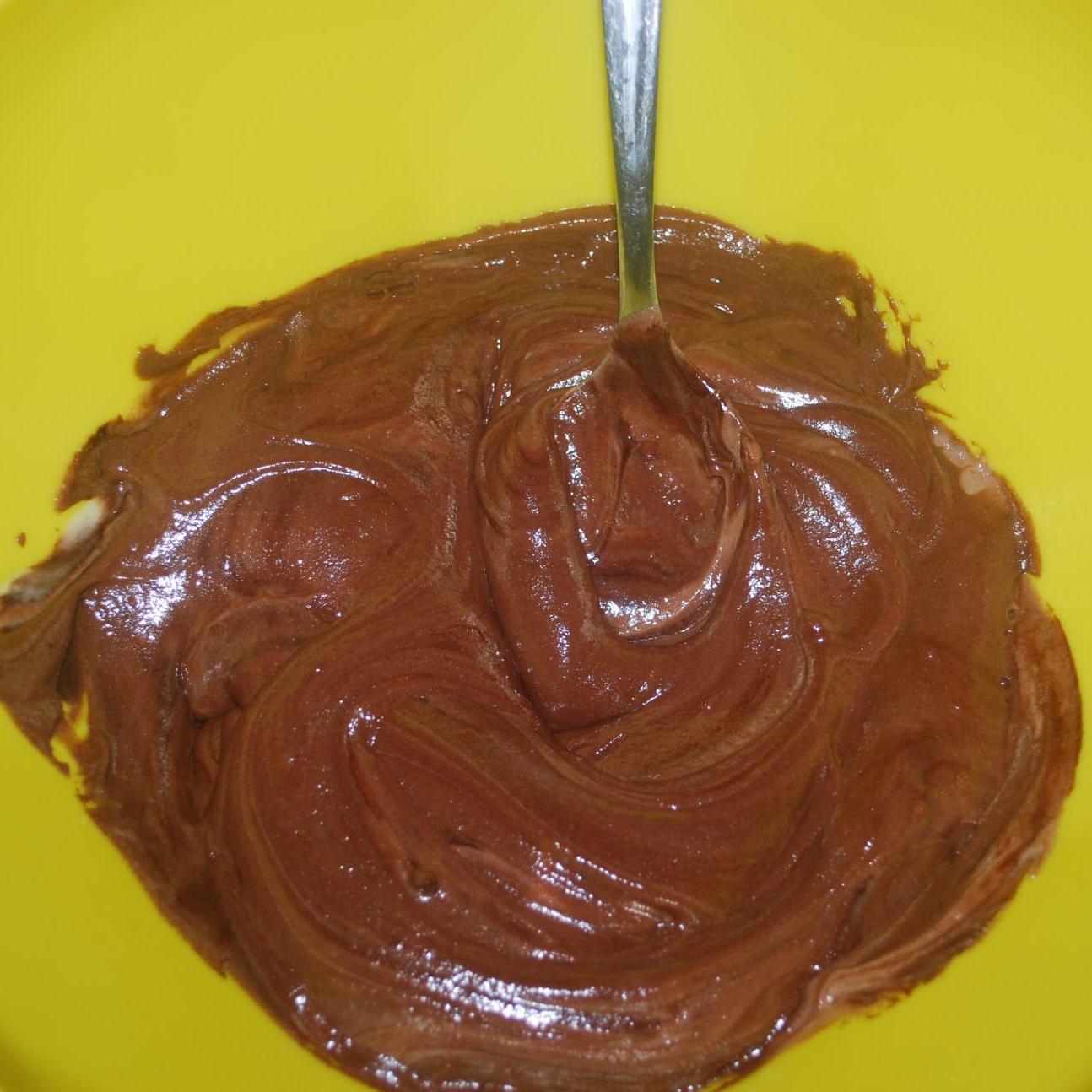 - In un bicchiere prepariamo il cioccolato (foto 1), mettiamo 3 cucchiaini di zucchero, 3 di cacao e 3 cucchiai di acqua calda, mischiamo tutto bene e lasciamo a reffreddare e nel frattempo cominciamo con la ciambella....Imburriamo lo stampo da ciambella e cospargiamolo di farina.