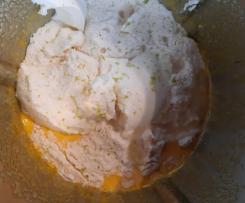 "coperchio chiuso" mettere uova e zucchero e mescolate per 2 minuti vel 3 finché non saranno bei spumosi - Ora unite farina ricotta succo lime e buccia burro sciolto latte e mescolate per 15 Sec Vel 4 se vedete che impasto risulta troppo duro unite ancora un po' di latte