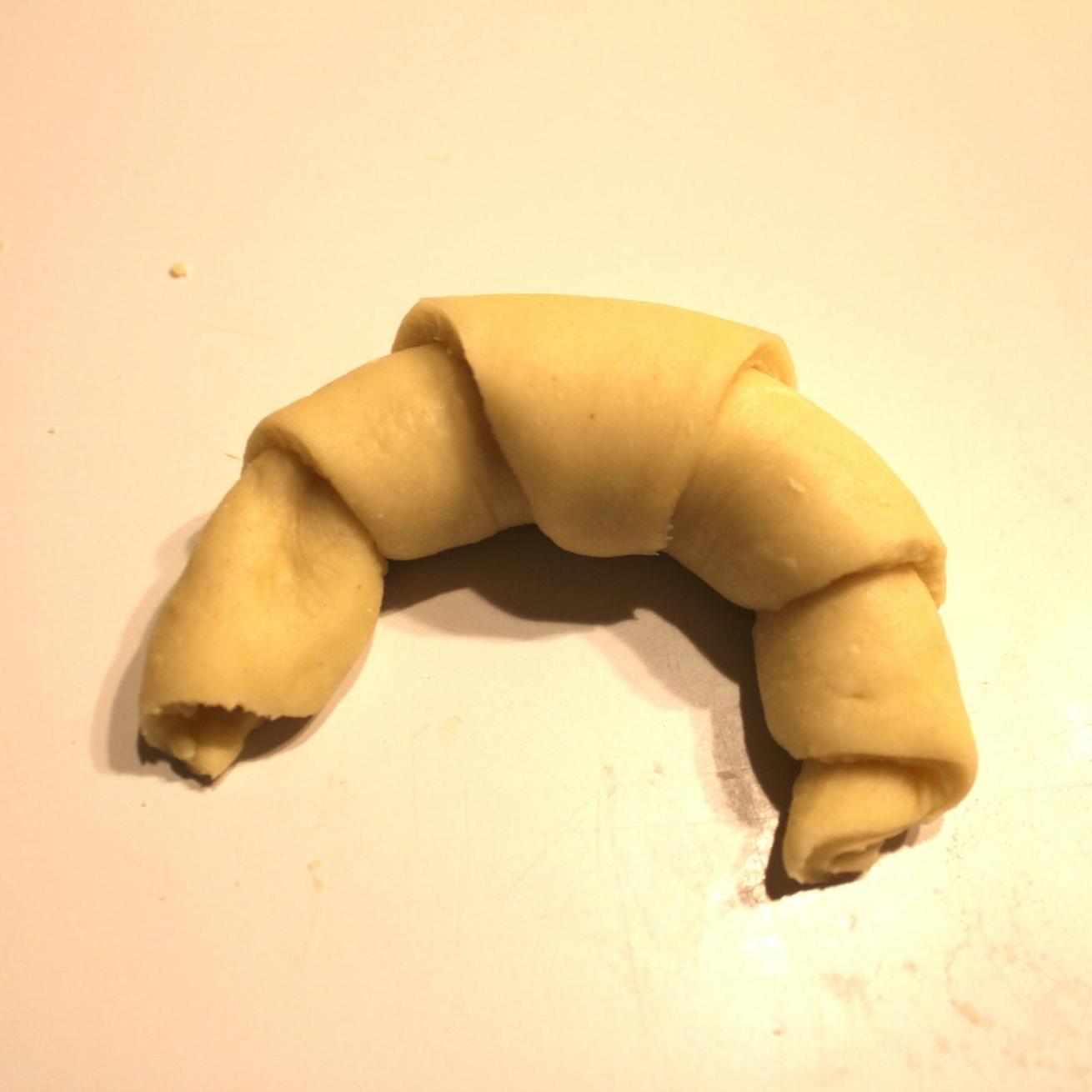 Io il ripieno di solito lo metto al momento della preparazione del croissant: metto il ripieno sulla parte piu larga della striscia e poi la piego.