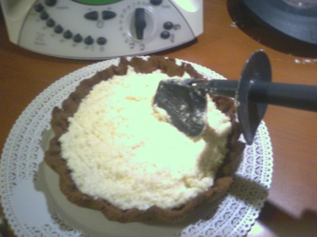 "coperchio chiuso" ricotta, cocco, zucchero, amaretto e mandare 15 sec vel 5.Quando la crostata è ben fredda adagiare la farcia sulla crostata e distribuire bene con la spatola.