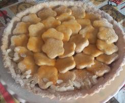 Con la frolla rimanente fare dei biscottini per la decorazione (al posto delle classiche striscioline) e infornare tutto per 30 min. circa. - Stendere la pasta di mandorle tra 2 fogli di carta forno, spolverata di zucchero a velo e, appoggiare il disco sopra il guscio di frolla.