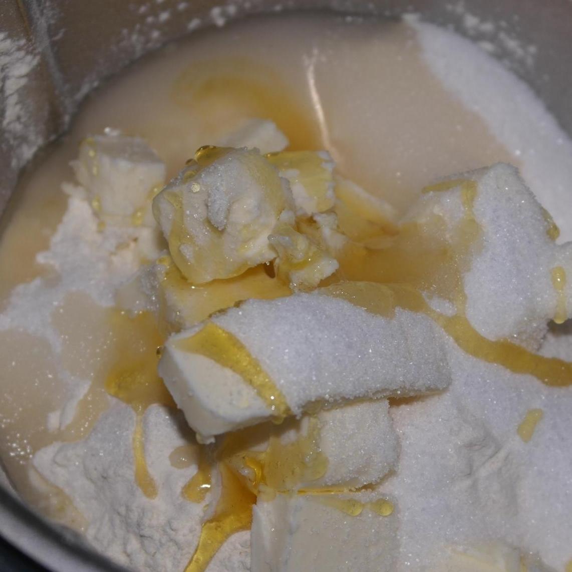 2. Aggiungere tutti gli altri ingredienti tranne il latte, impastare: 2 min vel 2/3.