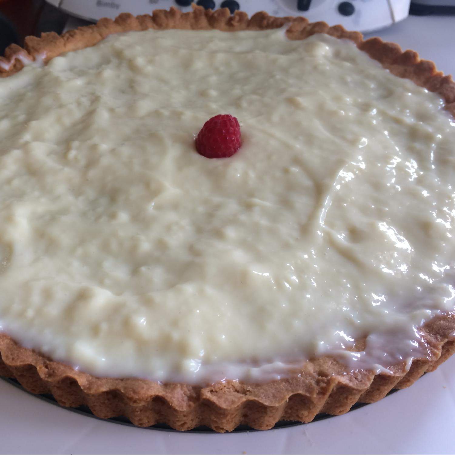 Una volta raffreddata sia la frolla sia la crema coprire la frolla con la crema