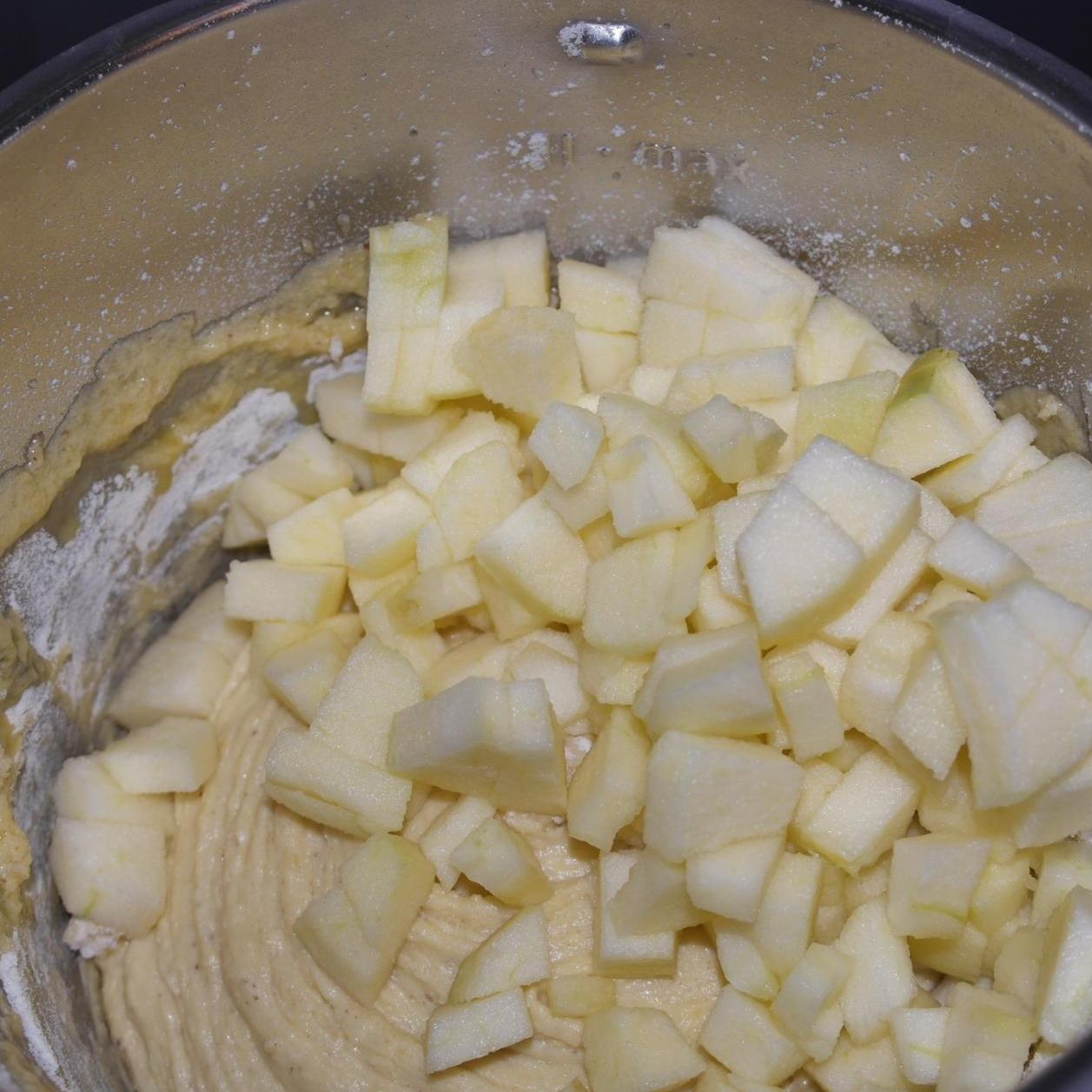 Tagliare le due mele a pezzettini piccoli e aggiungersi all'interno impasto ottenuto: 30 sec vel 3