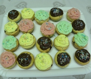 Mettere ogni crema nelle sac-apoche e riporla ancora in frigo per pochi minuti e poi decorare i cupcake, poi mettere sopra delle codette colorate.