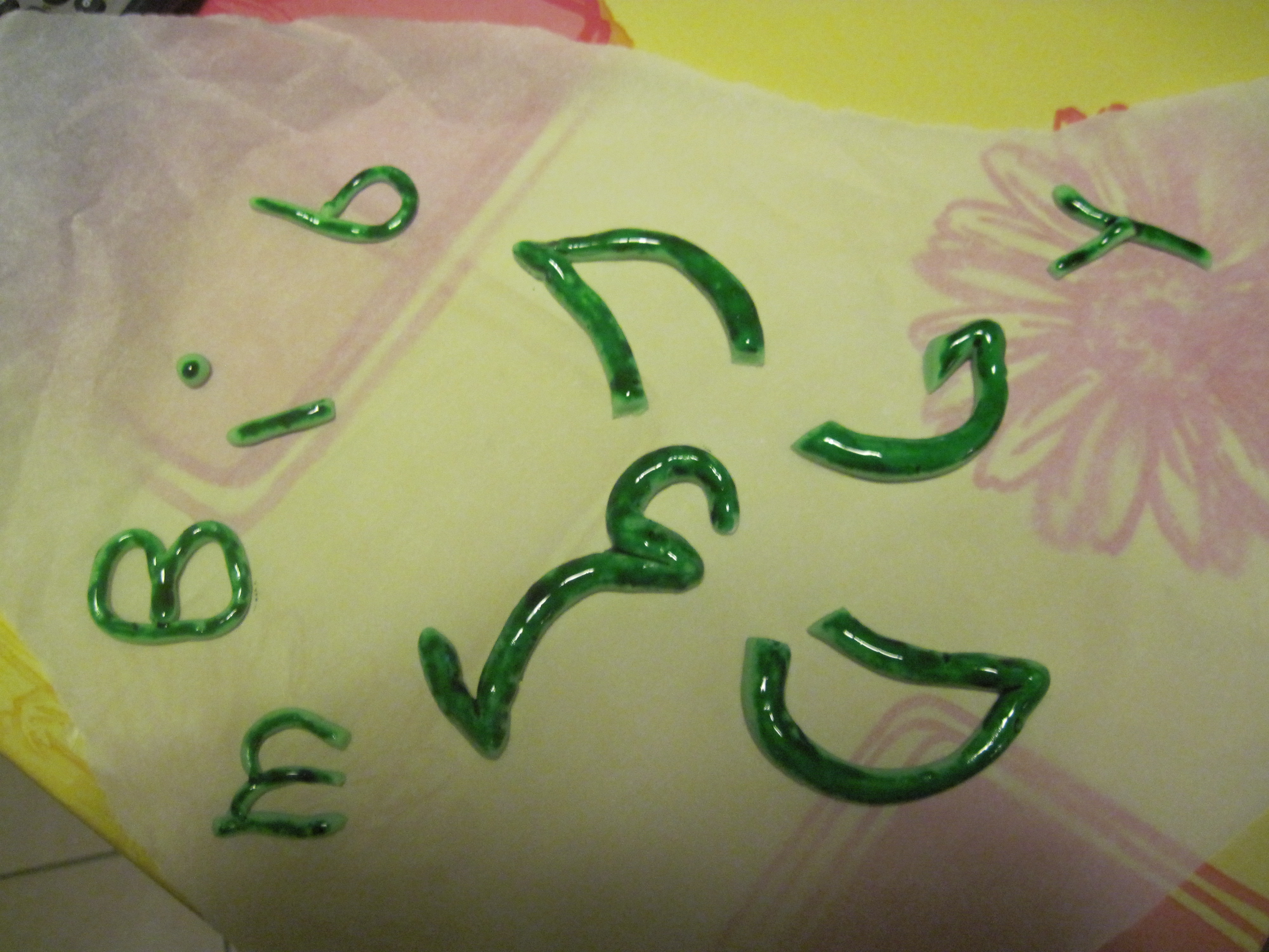 - Con la pdz grigia scura realizzare la spatola e con quella verde il logo e la scritta Bimby, da dipingere col colorante verde una volta asciutta;