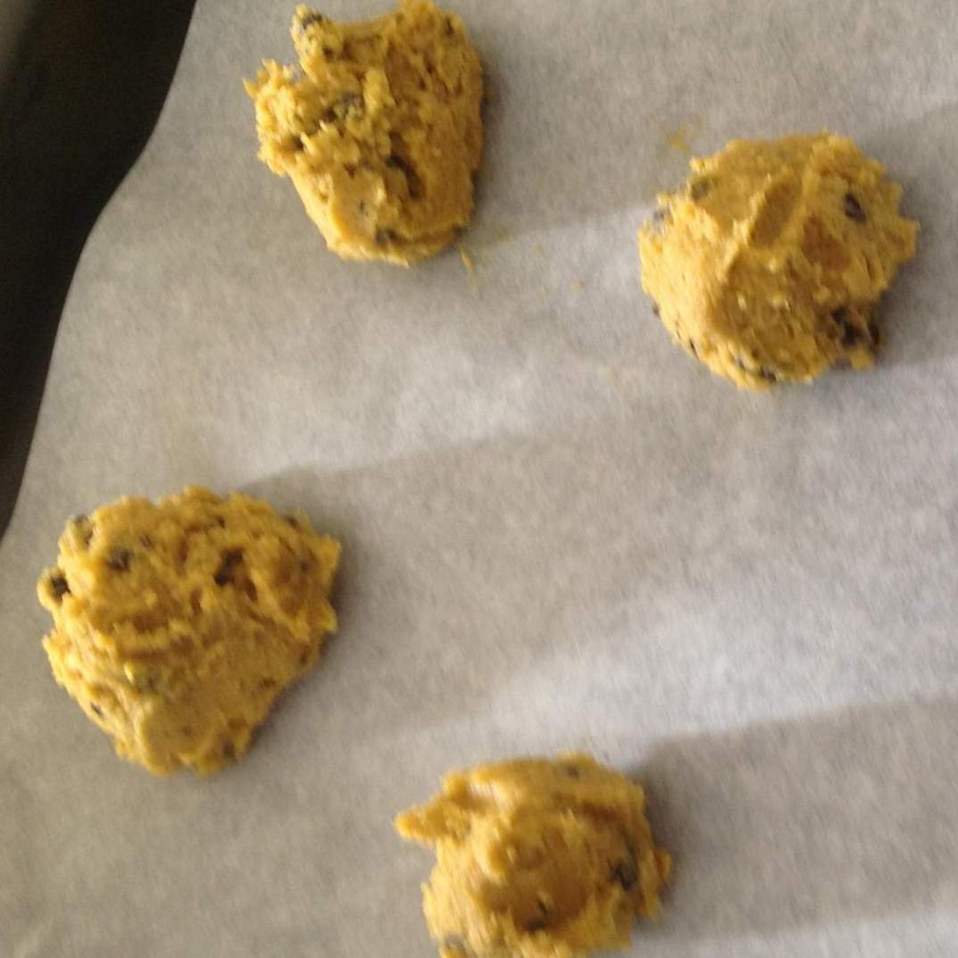 Far riposare l'impasto in frigo per 30 minuti. Passati 30 minuti preriscaldare il forno ventilato a 180°C e togliere l'impasto dal frigo. Aiutandosi con 2 cucchiai, formare delle palline da porre nelle teglie da forno foderate con carta forno (le palline devo essere separate 2-3 cm perchè si allargano durante la cottura). Cuocere in forno per 8-10 minuti e buon appetito.