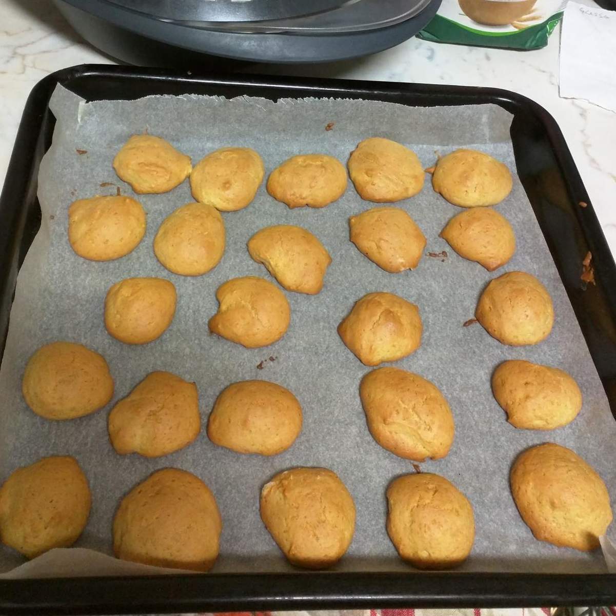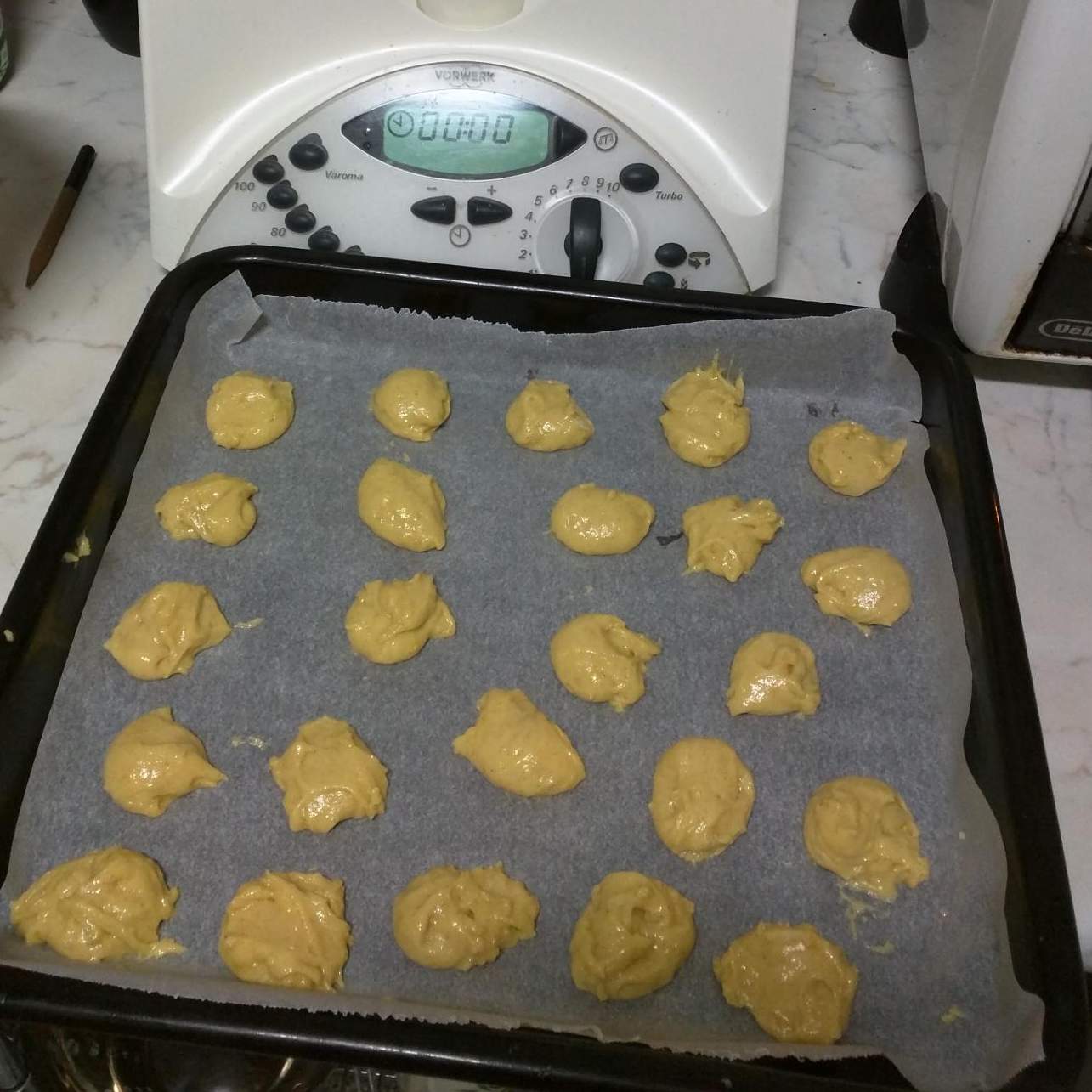 Aiutandosi con un cucchiaino, formare quasi delle palline e disporle su carta forno distanziate fra loro.