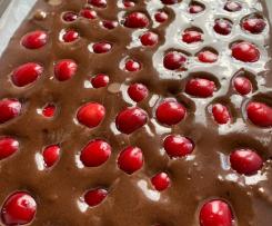 4. In una pirofila rettangolare con carta forno versare l'impasto e disporre le ciliegie denocciolate sopra (potete variare la quantità a seconda dei gusti)