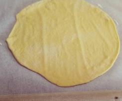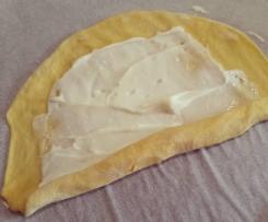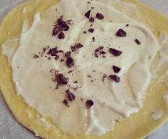 Aggiungere la Robiola 5 Sec. Vel 4. mettere da parte. - Stendere con il mattarello una pallina, spalmare la crema di Robiola e distribuire il cioccolato.
