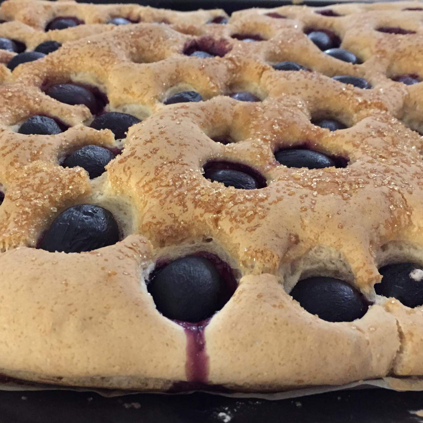 Estrarre la placca dal forno e spolverizzare con abbondante zucchero di canna.