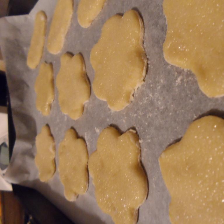 Ogni biscotto va preso con una mano e con l'altra bagnarsi le dita con l'acqua, inumidire la parte sopra del biscotto, adagiare sullo zucchero, ultimo passaggio sulla teglia.