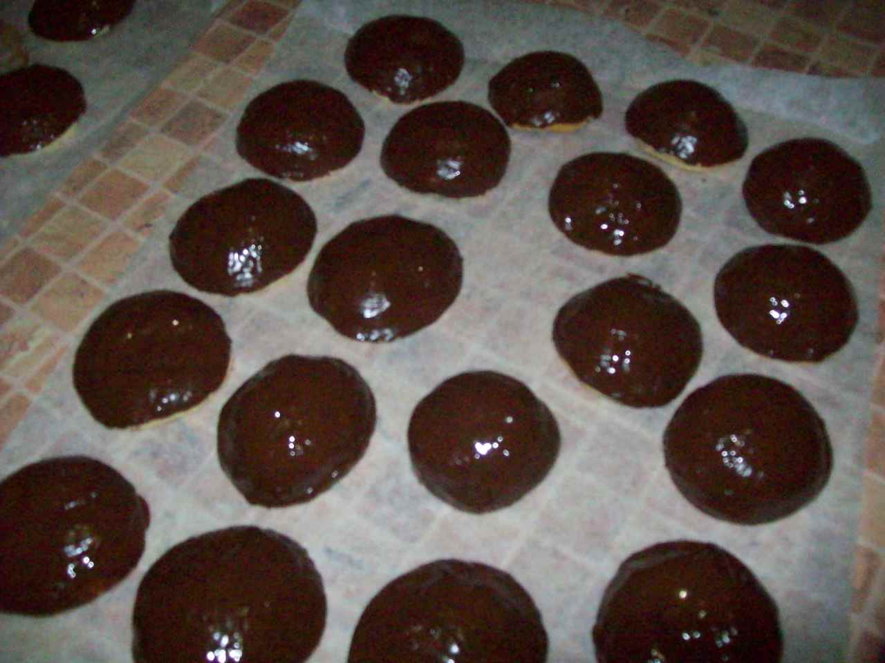 "coperchio chiuso" . Appena è fredda, aggiungere la margarina: 10-15 sec / vel 3-4, mettere da parte. Ora lavorare l'impasto un pò con le mani e poca farina. Dividerlo in 3 parti: 1- grande; 2- media, 3- piccola. Stendere l'impasto grande, ritagliarne dei dischi (un bicchiere normale). La stessa cosa fare con l'impasto medio, con un bicchiere più piccolo, in più, dei piccoli bucchi in mezzo (vedi foto). L'impasto più piccolo: stendere, ricavarne dei triangoli, mettere poca marmellata, arrotolarli, formando dei gambi. Ora, i dischi grandi appoggiare sulle formine (come foto), imburrate. Infornare il tutto. Forno caldo: 180° / fino alla doratura. Raffreddarli bene. Sciogliere il cioccolato, spennellare tutti i cappelli dei funghi, lasciarli ad asciugare bene. Ora mettiamo tutti i "pezzi" insieme: il cappello riempito di crema - il cerchietto - il gambo. Ora, ogni gambo mettiamo nell'albume, poi nei semi di papavero. è pronto. Vanno tenuti in frigo.Per il cestino