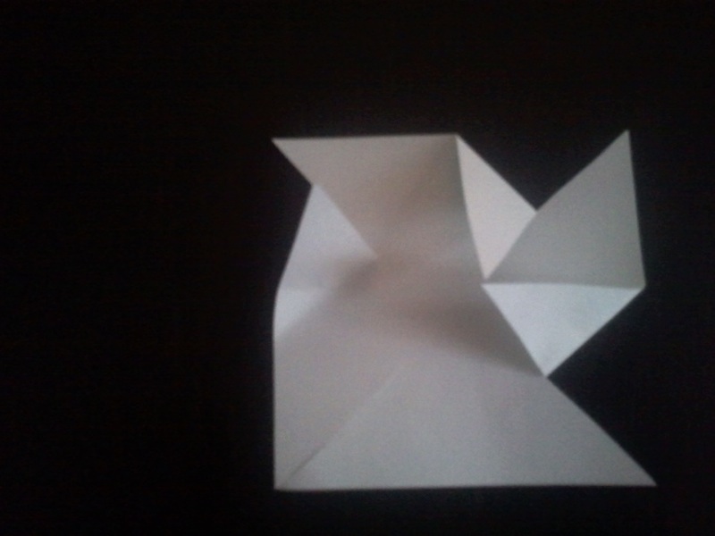 Ora tagliate i quattro lati, seguendo le istruzioni che ho realizzato usando un cartoncino (se volete fate come me, esercitatevi prima con un foglietto o un tovagliolo per capire quanto è facile!)