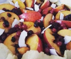 Un dolce semplice, rustico e sano ricco di frutta. Volendo si può cambiare la frutta e anche la marmellata in base alla frutta di stagione e ai gusti personali.