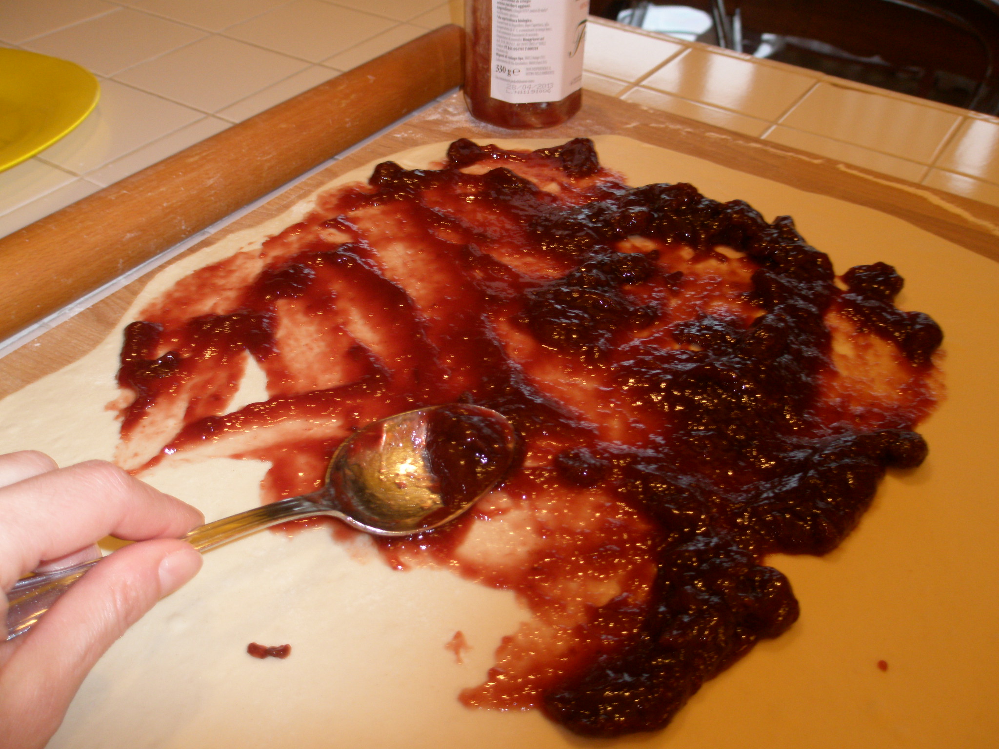 Spalmare fino ai bordi tutta la marmellata.