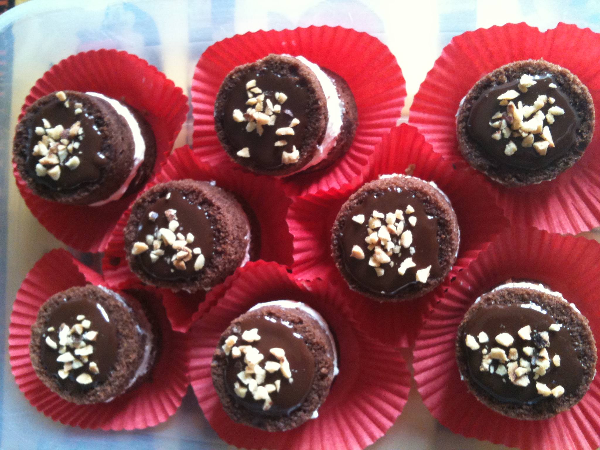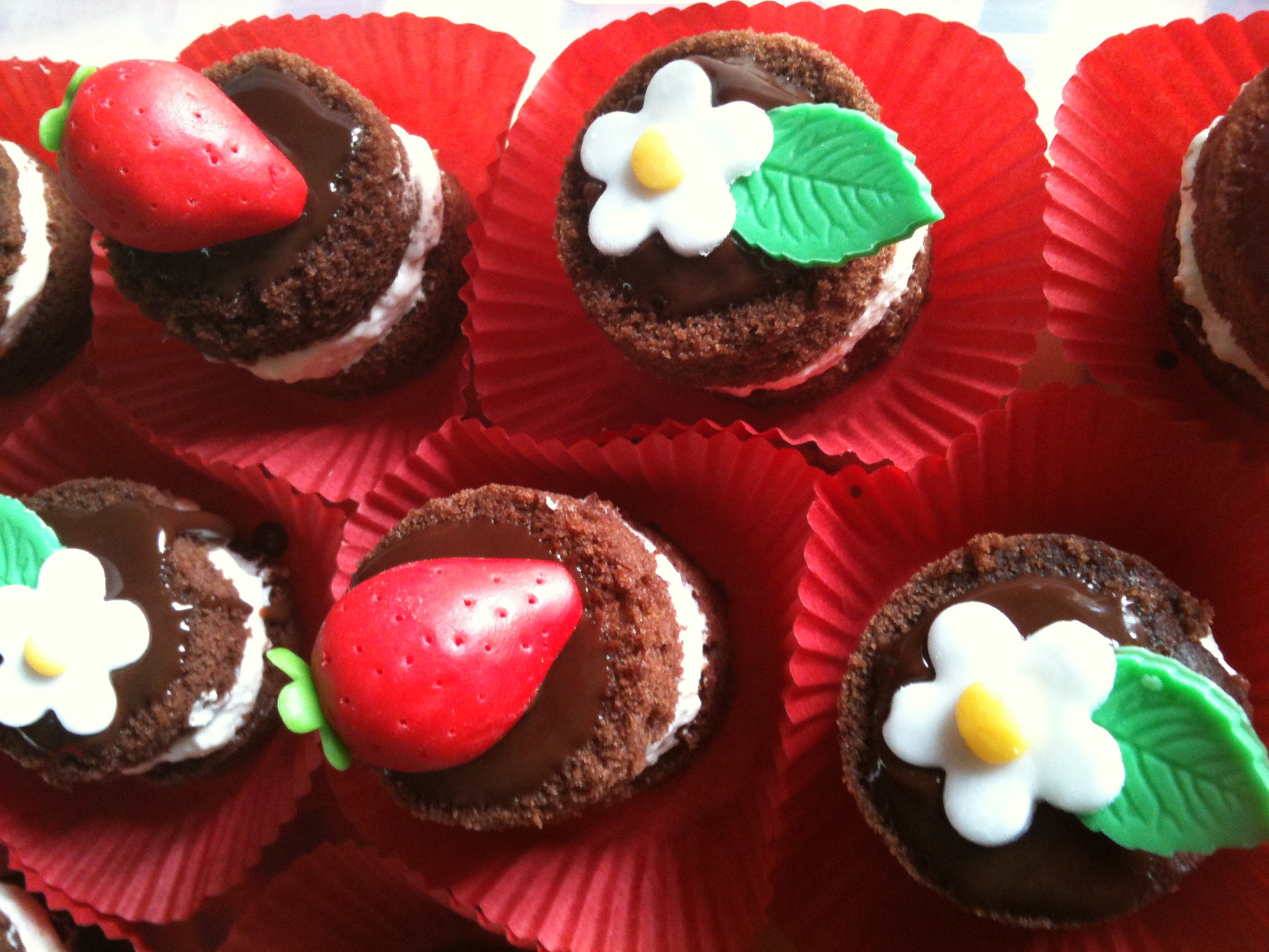 Decorare a piacimento con cioccolato fuso e granella di nocciole, cocco o decorazioni in pasta di zucchero. Tenere le mini cakes in frigo fino al momento di servirle.