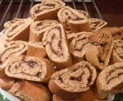 Realizzare col matterello una sfoglia sottile e formare un rettangolo non più lungo della leccarda che si utilizzerà per cuocere. Con l'aiuto di un cucchiaio, spalmare sul rettangolo marmellata a piacere, che non sia troppo liquida. Arrotolare la sfoglia su se stessa, sigillare i due estremi premendo con i rebbi di una forchetta, spennellare la superficie con il liquido utilizzato nell'impasto e bucherellare con la forchetta. Adagiare il rotolo nella leccarda rivestita di carta da forno. Cuocere fino a doratura. Far raffreddare sopra una griglia. Quando è ancora leggermente tiepido, tagliare delicatamente, a fette di circa 3 cm. con un coltello seghettato.