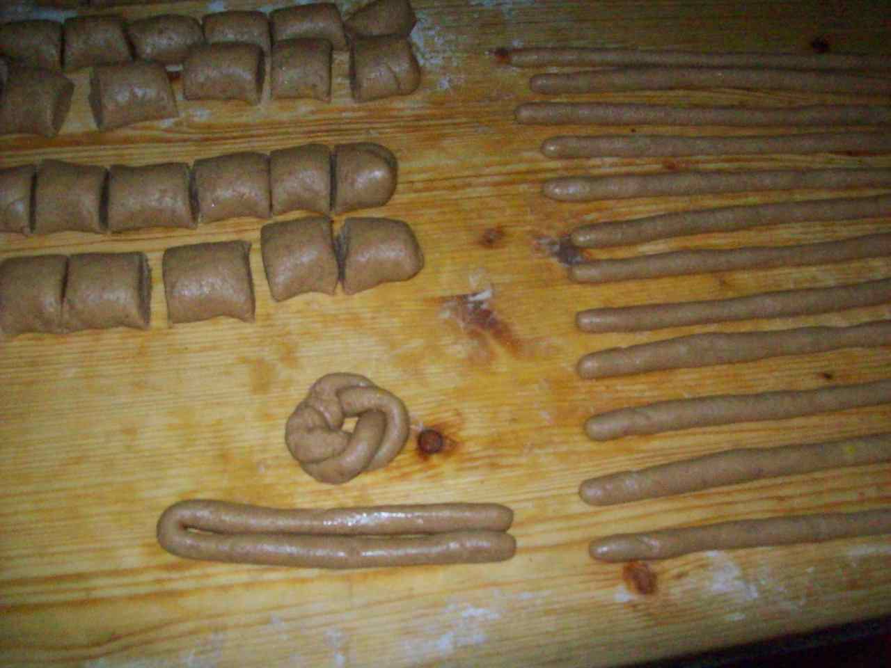 1. Nel coperchio chiuso"coperchio chiuso" mettere la scorza e lo zucchero: 10sec / vel 8, mettere da parte. Tritare il cioccolato al latte: 10-12sec / vel 8. Aggiungere tutti gli altri ingredienti: 30sec / vel 5. Togliere, lavorare 2-3min con le mani. L'impasto dividere in 48 parti. Formare dei rotolini sottili, lunghi circa 20-25cm. Piegarli a metà, formare i biscotti. Cuocerli nel forno caldo: 180° / 12min circa. Lasciarli a raffreddare. Una volta freddi, intingerli nel cioccolato sciolto, lasciarli a rassodare.