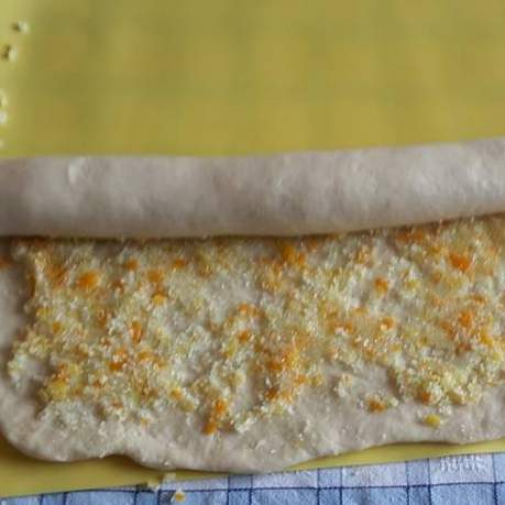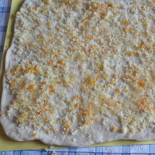 5. stendere gli impasti uno alla volta e farcire con lo zucchero aromatizzato