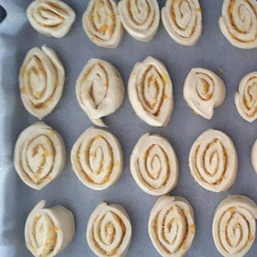 Unica pecca lo zucchero con la scorza degli agrumi che esce in cottura e "allaga" le girelle (e il forno!! tmrc_emoticons.~ ), forse come suggeriva qualche bimbyna sopra sarebbe bene chiudere con un disco di impasto il fondo delle girelle. Le riproverô presto con questa accortezza.