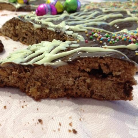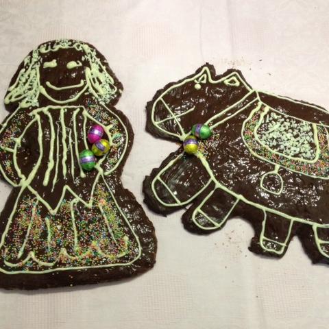 - Una volta freddi,spennella con cioccolato fondente fuso,e decora con cioccolato bianco fuso(utilizzando una siringa o una tasca da pasticcere con una punta molto piccola) e zuccherini a piacere.