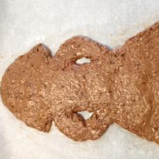 L'impasto deve essere morbido ma consistente,se necessario aggiungere un pò di farina. - Preleva l'impasto dal boccale e dai forma su carta da forno dei soggetti(pupa,cavallo o cuore),con uno spessore di circa 1 cm;non preoccupatevi se non hanno una forma perfetta,la tradizione li vuole caricaturiali!Con questa dose si ottengono due dolci medi o tre più piccoli.