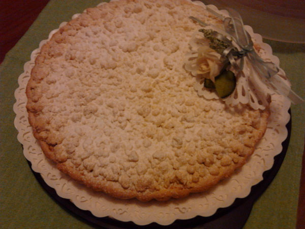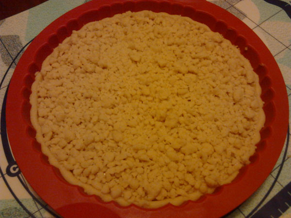 Coprire con l'impasto tritato grossolanamente (è tipo una mimosa ma fatta con la pasta frolla).