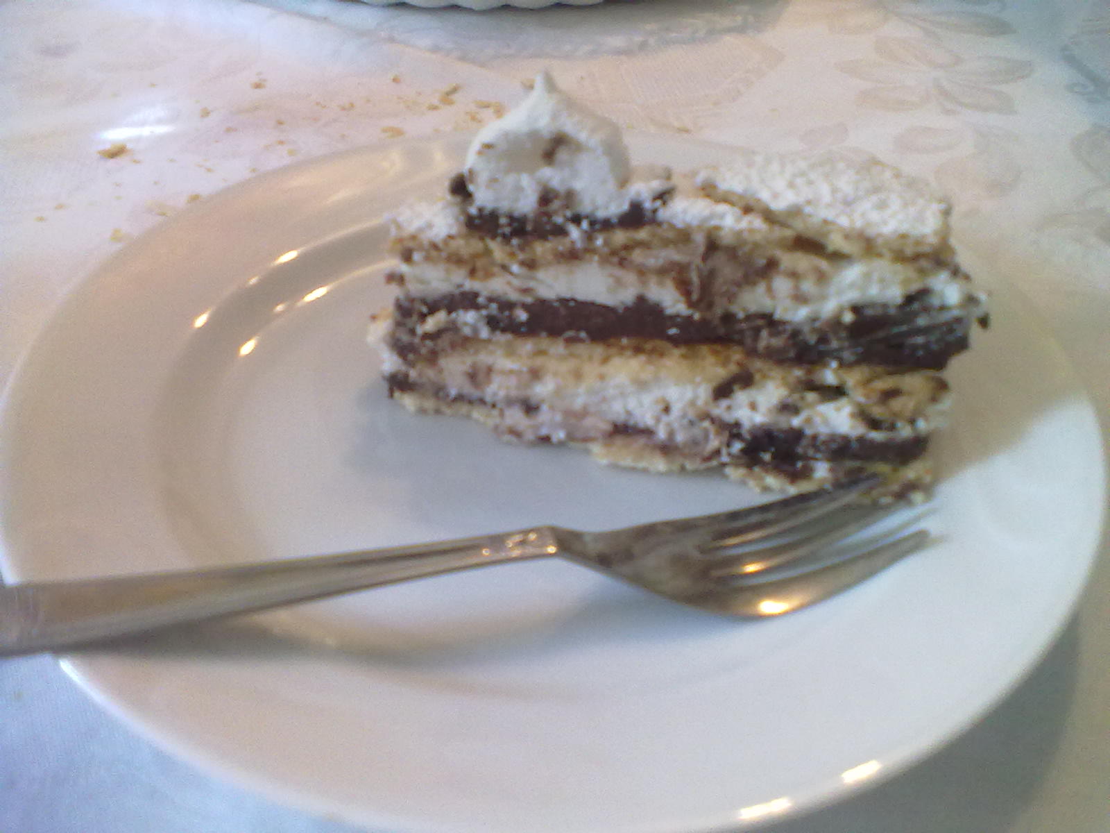 "coperchio chiuso" , mettere la farfalla e montare la panna rimanente con un po' di zucchero a velo: 4 minuti vel 3.Per assemblare la torta: nella tortiera con cerniera apribile mettere un disco di meringa, uno strato di cioccolato e uno di panna, poi ancora un disco di meringa, cioccolato e panna, concludere con un disco di meringa. Spolverizzare con zucchero a velo e guarnire con delle meringhette. Mettere in freezer per almeno 3 ore, togliere un'ora prima di servire.