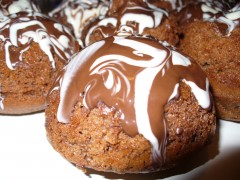 Fare una glassa al cioccolato e versarla sopra i muffin.