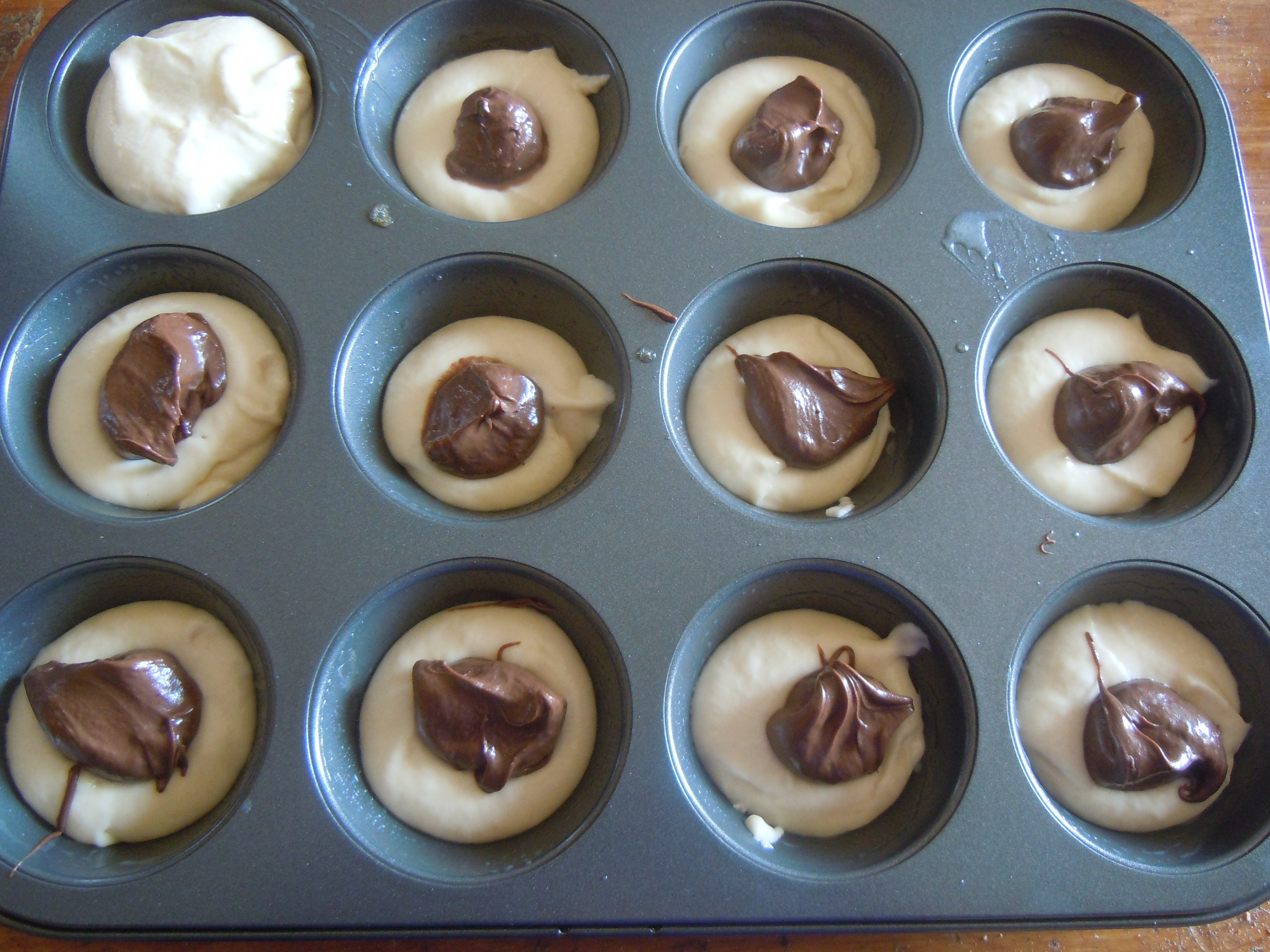 Ho versato un cucchiaio di impasto negli appositi stampini ed ho aggiunto al centro un cucchiaino di nutella.