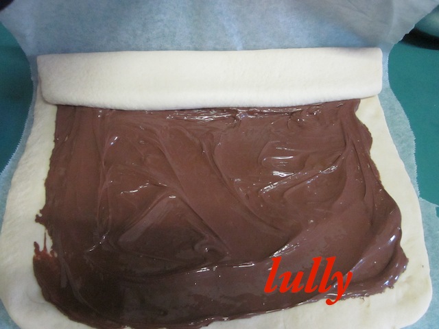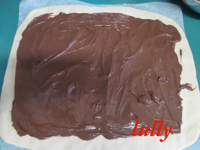 spalmare la nutella lasciando circa 2 cm di pasta liberi sui bordi.
