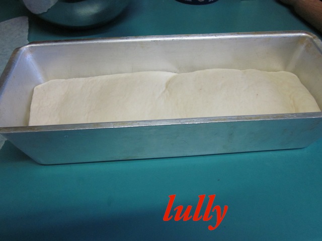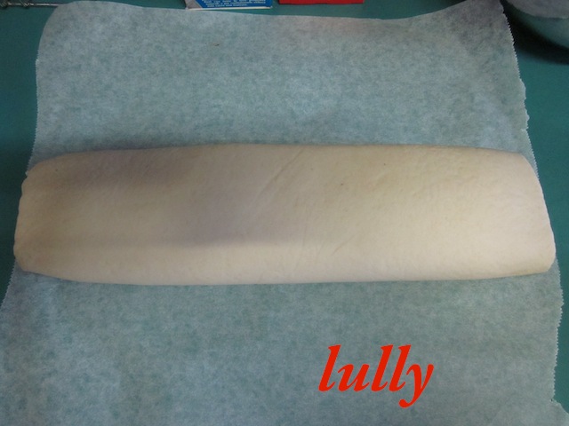 con l'aiuto della carta forno arrotolare la pasta partendo dal lato più corto, mettere il rotolo ottenuto nello stampo da plumcake imburrato e lasciar lievitare fino al raddoppio.