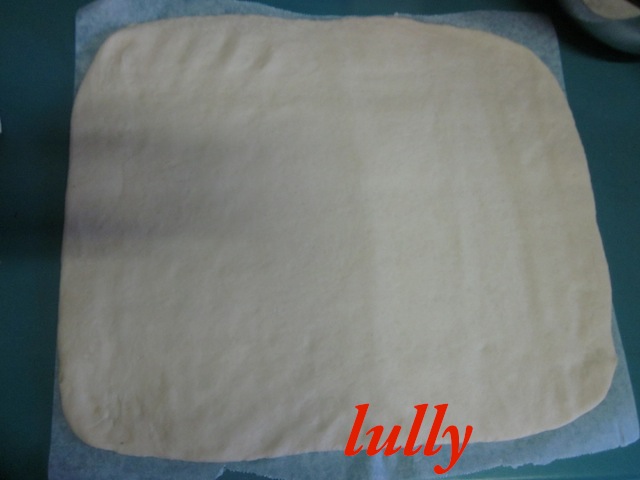 riprendere la pasta e stenderla sopra ad un foglio di carta forno formando un rettangolo di circa 30x40 cm.