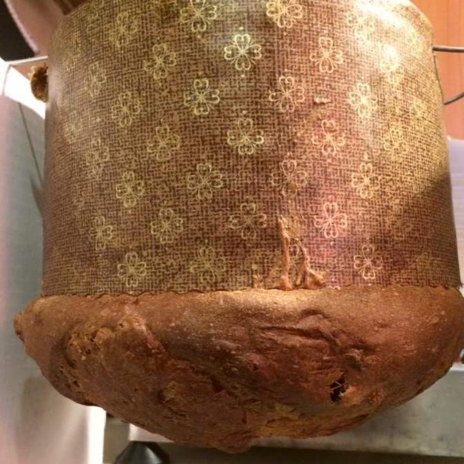 - Forare quindi il pirottino alla base con i ferri per panettone e capovolgere il tutto sospendendolo all'interno di un pentolone o dove vi sarete ingegnati di tenerlo capovolto per almeno 6 ore. Potrete poi girarlo ma prima di imbustarlo attendete almeno altre 6 ore.