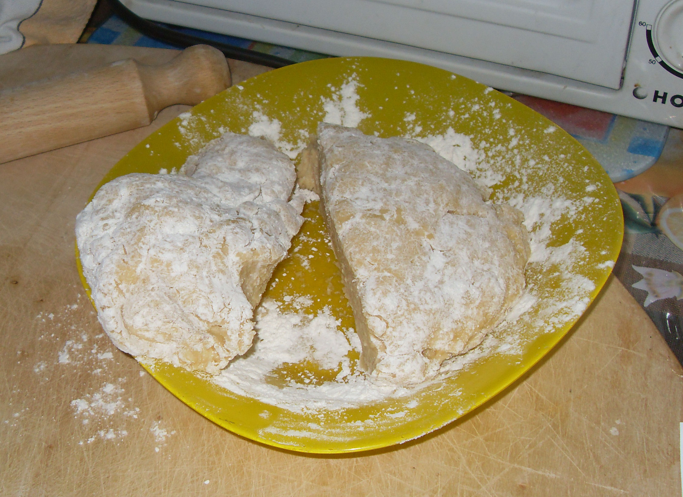 9. Riprendere l'impasto, dividerlo in due parti uguali e stenderle entrambe con il mattarello.