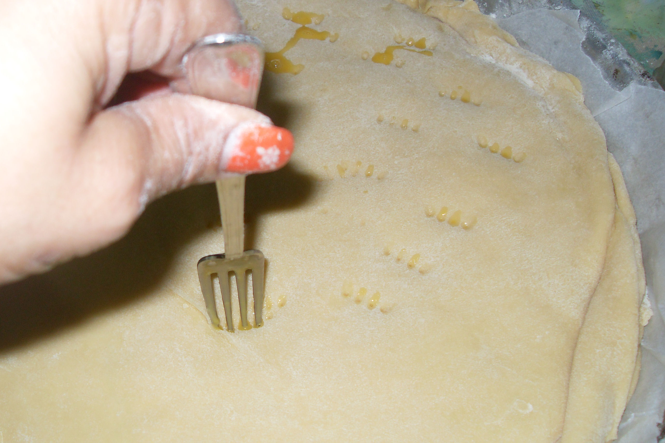 12. Bucherellare la superficie della pastiera con i rebbi di una forchetta e spennellarla con un tuorlo d'uovo.