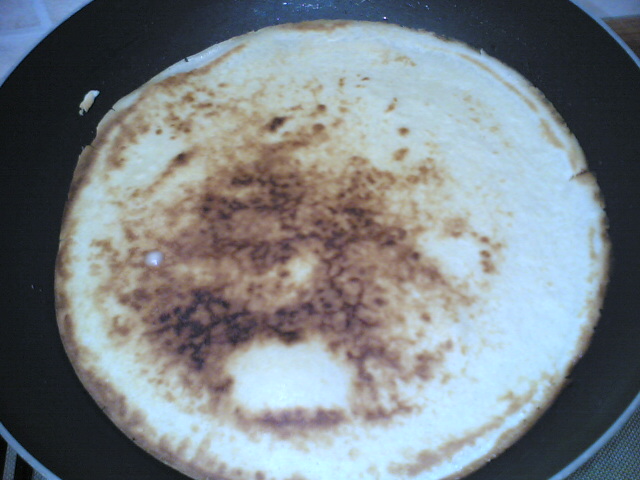 la mattina scaldate una padellina antiaderente e mettere una noce di burro e versare una cucchiaiata  del composto e spargere il composto bene in tutta la padella, in pochi minuti si forma già, girate il pancake dall'altro lato.