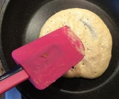 Cuoci ogni pancake per un paio di minuti da entrambi i lati, a fiamma dolce, aiutatando a dare la forma tonda con una spatola, quando vedrai delle bollicine sulla superficie del pancake significa che dovrai girarlo dall'altro lato. - Servi i pancakes subito, ancora caldi con un velo di sciroppo d'acero oppure con una spolverata di zucchero a velo