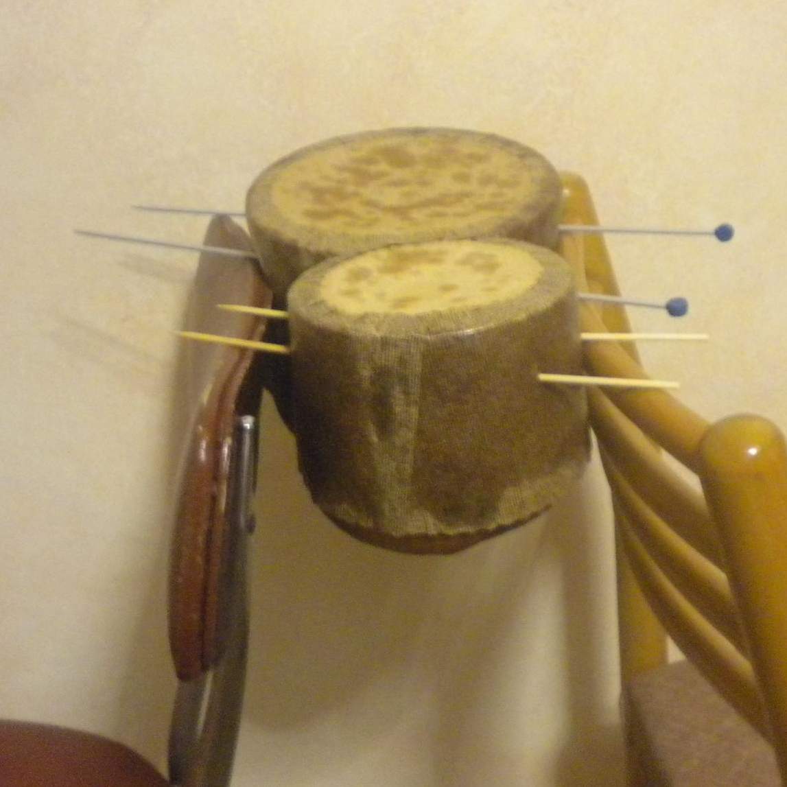 Quindi sfornare infilzare con ferri da maglia o stecchi grandi e mettere a raffreddare a testa in giù.