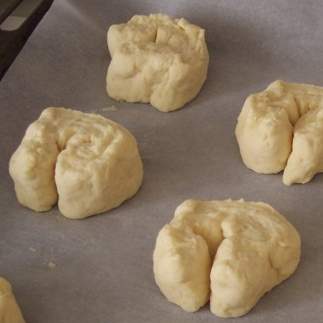 Tagliare il rotolo così ottenuto in fette di 4/5 cm e riporle sulla teglia con carta da forno; coprire e metterle nuovamente a lievitare per almeno 30 minuti.