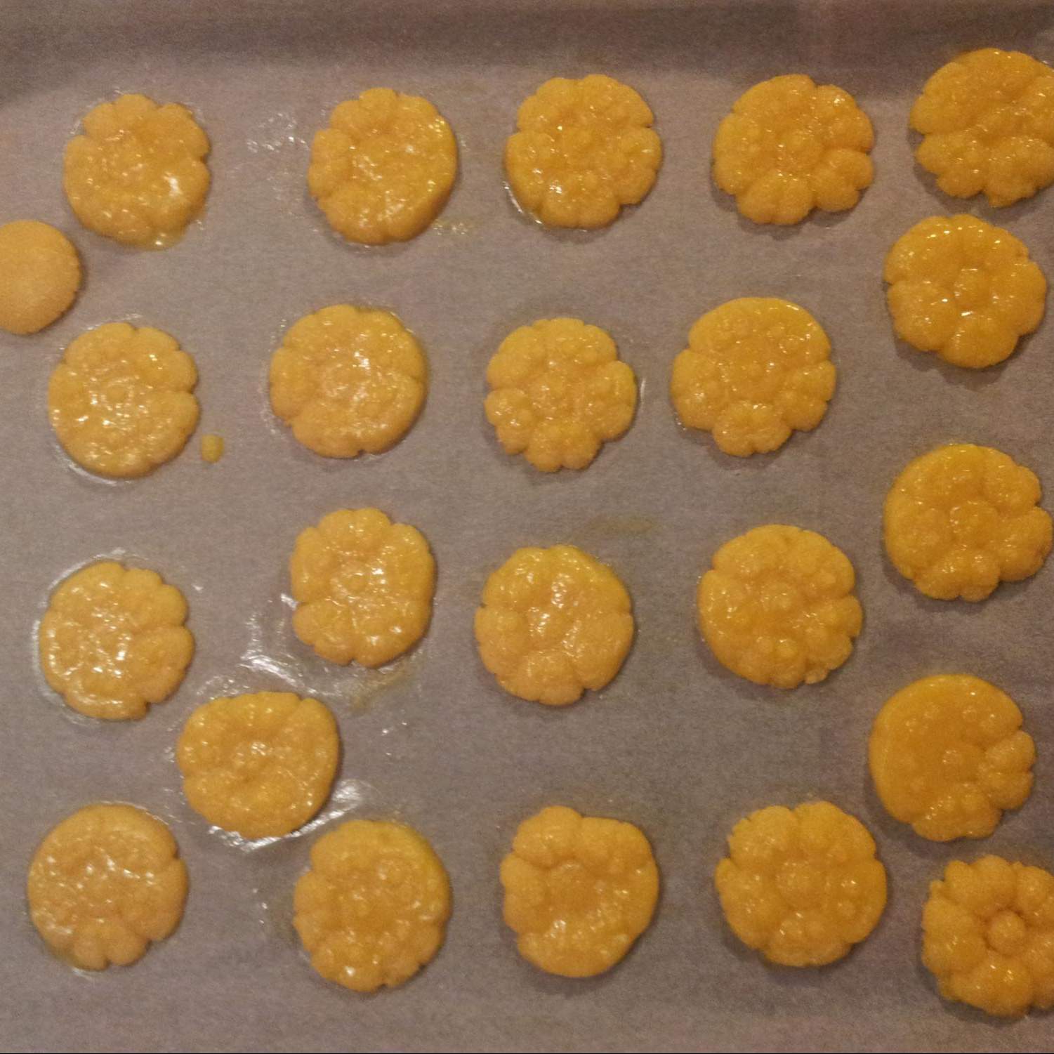 ed inserirlo man mano nella sparabiscotti per dare la forma desiderata. Mettere i biscotti su una teglia foderata di carta forno e cuocere in forno statico per 15 minuti a 180°.