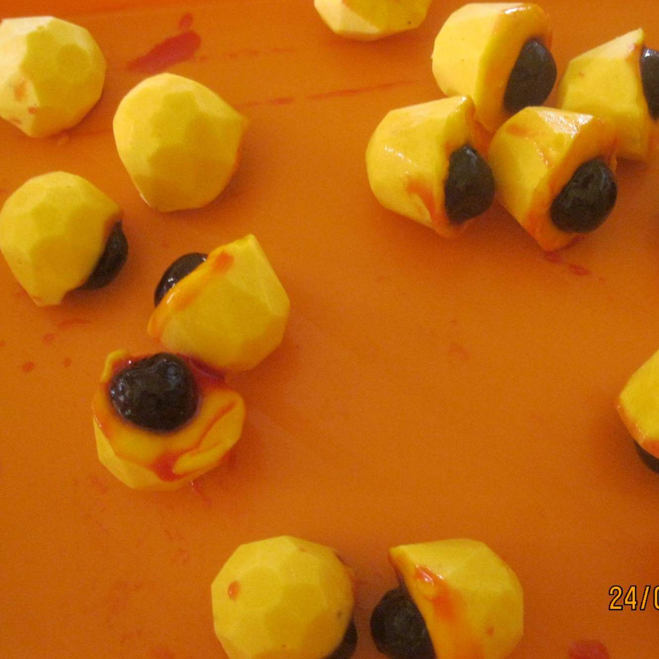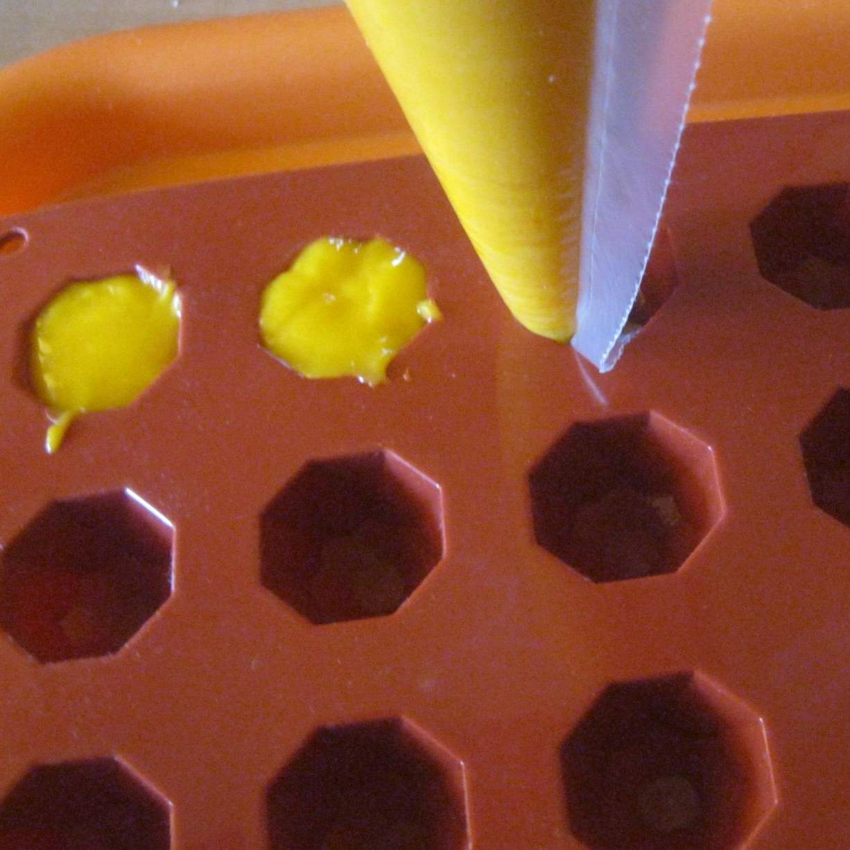 "coperchio chiuso" tutti gli ingredienti e cuocere per 10m a 90° deve risultare un composto sodo . Fate raffreddare e aiutandosi con un sac a poche riempire degli stampini in silicone