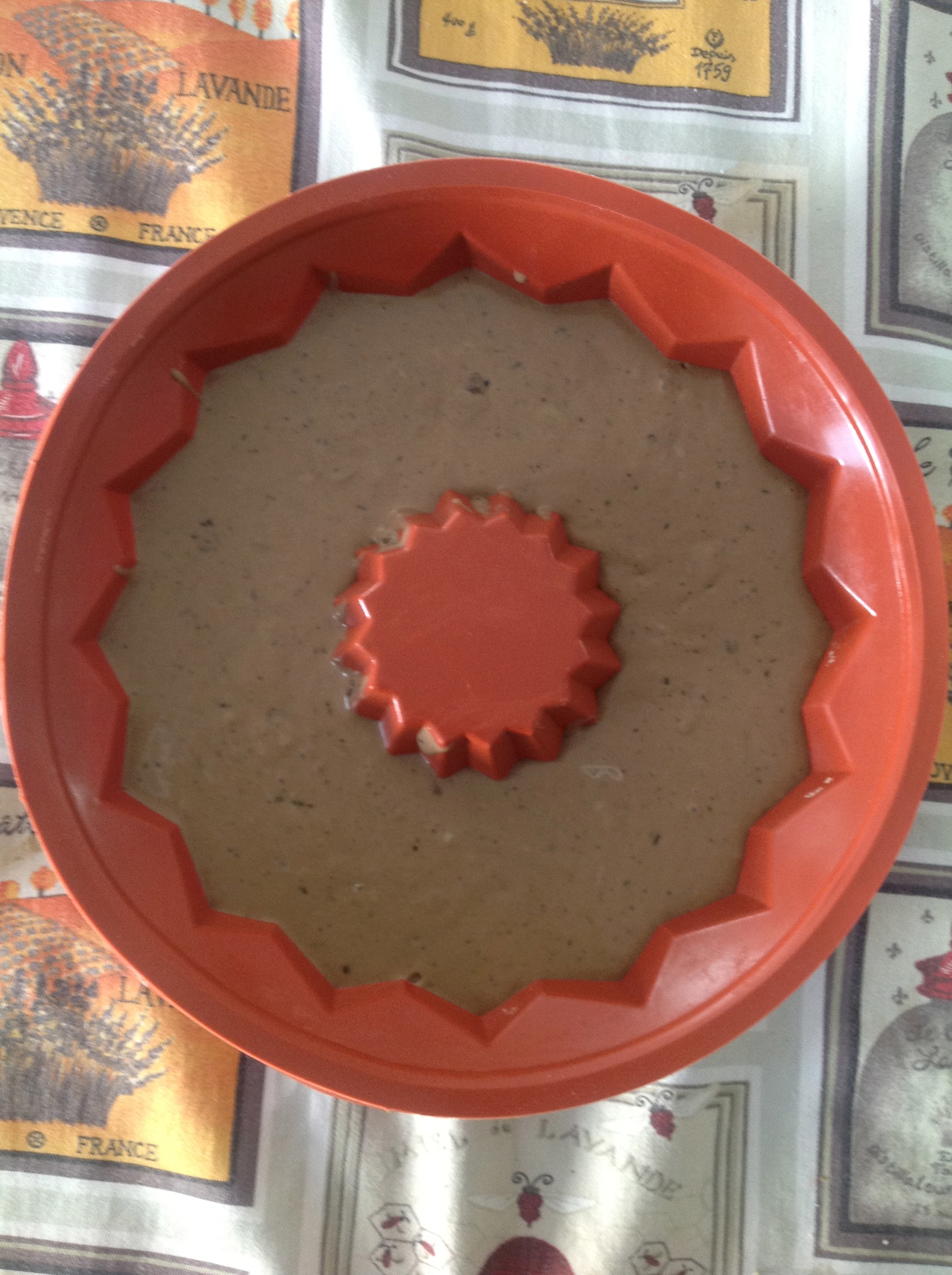 Versare il composto amalgamato nello stampo da ciambella e metterlo in forno preriscaldato ventilato a 170° per 45min. (regolarsi cmq coi tempi di cottura del proprio forno).