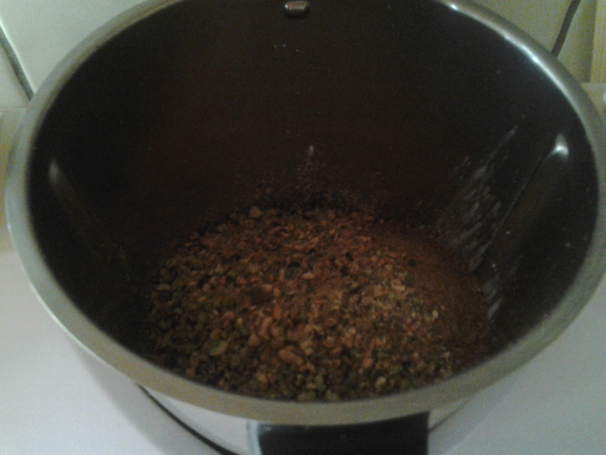 togliere la farfalla e unire il trito e aggiungere la farina, lo zucchero un pizzico di sale e il lievito; amalgamare 10 sec vel 1.