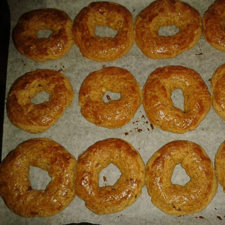 Una domanda: come hai formato le ciambelline? Rotolini di impasto chiusi ad anello, appoggiati sulla teglia e leggermente schiacciati con la mano? Oppure stendendo l'impasto (ma di che spessore?) e poi utilizzando dei tagliapasta? Grazie tmrc_emoticons.)