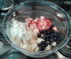 3. Tagliare a dadini la frutta tranne i mirtilli, mettere tutto in una ciotola con la robiola e mescolare.