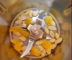 Aggiungere le mandorle pelate e polverizzare: 10 sec./vel.10. Riunire sul fondo con la spatola. - Unire l'acqua e frullare: 1 min/vel.10.