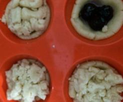 6. Prendere il composto e dividerlo in 10 parti e poi ancora a metà, sbriciolare la prima metà come base del pirottino, inserire le amarene (si può usare anche la marmellata io non ne avevo in casa) e sbriciolare soprà l'altra metà;